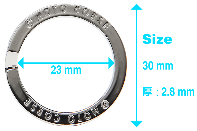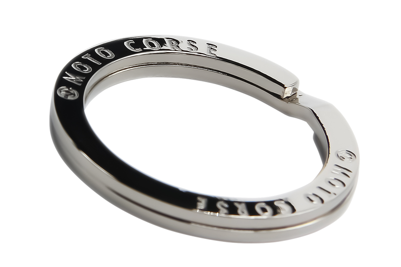 表面、裏面に4つモトコルセのロゴを配置。丁寧に磨きこまれ輝くリングは形状、寸法すべてにおいて皮革の頂点に君臨するクロコダイルレザーに見合うようリングをゼロから制作。市場で流通している既製品では満足できる結果を得ることができなかったための策。制作コストを無視してでも自らが納得し欲するものに徹底的にこだわる。妥協を許さないモトコルセ スタイルを具現化したようなリングとなっております。